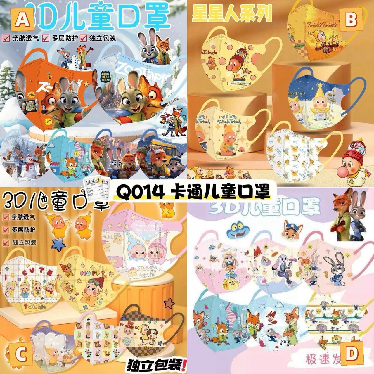 ✨ 星星人、疯狂动物城卡通款,超可爱图案设计,小朋友一戴就爱上😍