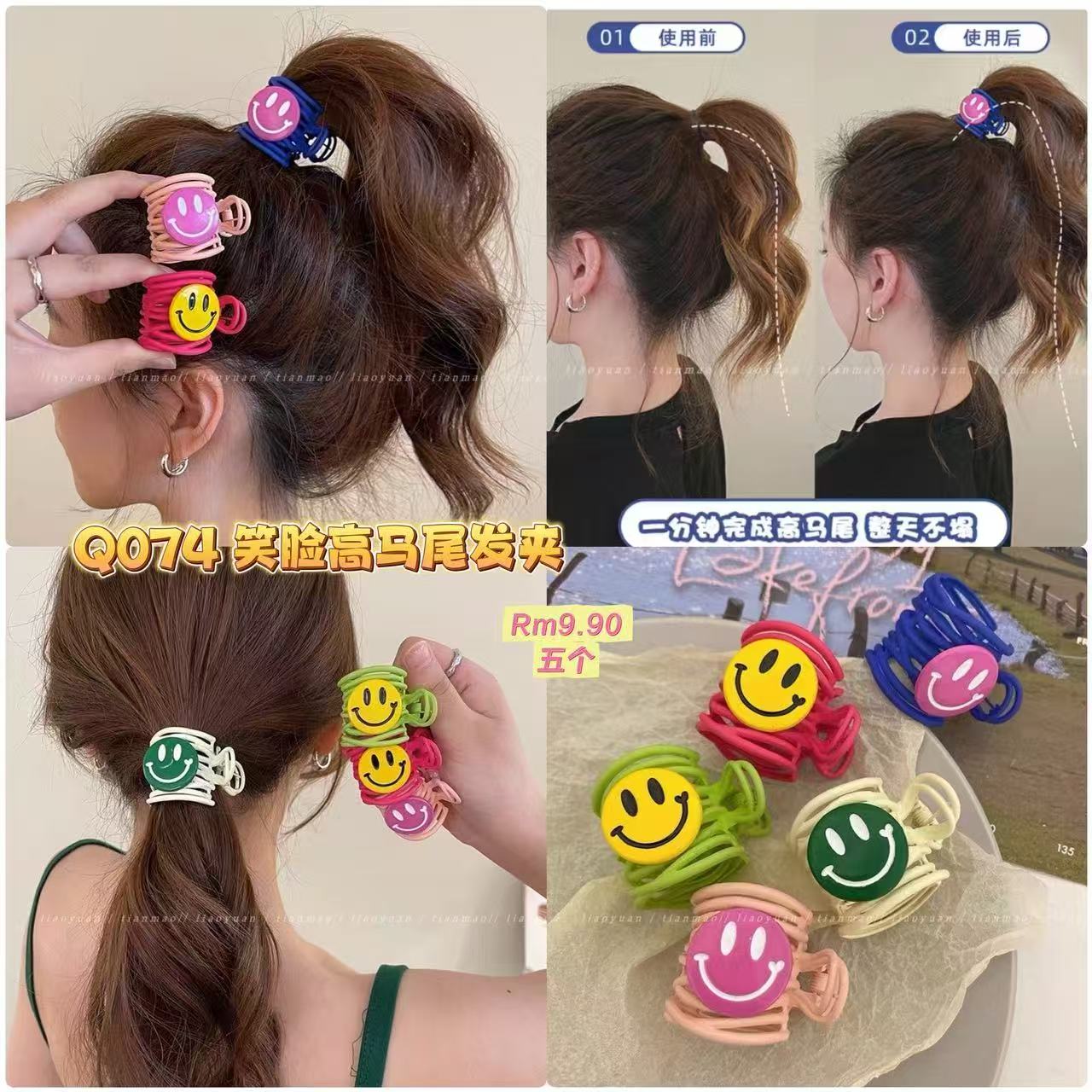 Q074 笑脸高马尾发夹 📦#Rm9.90 五个