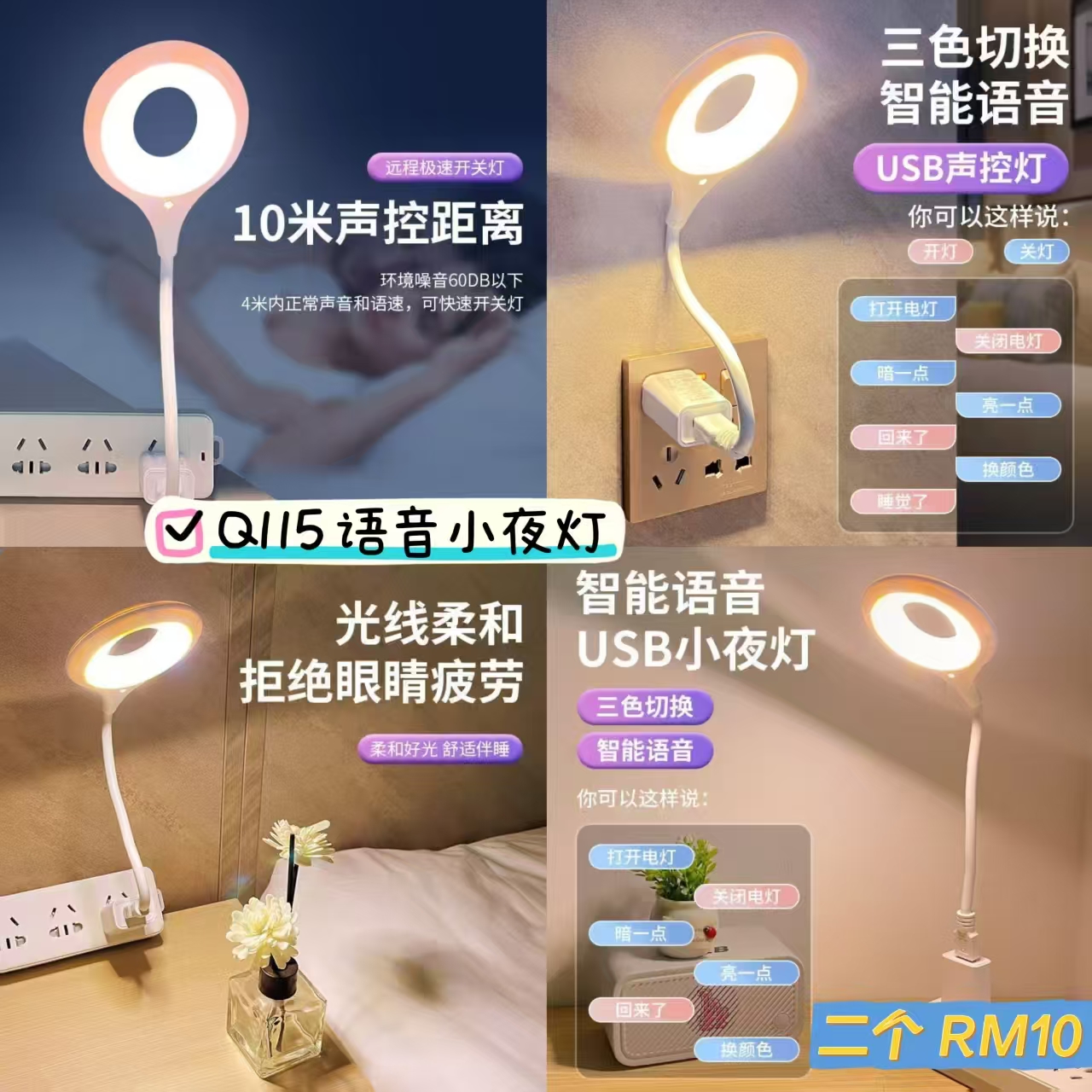 智能小夜灯可调节亮度 语音usb接口夜用护眼台灯声控👍🏻