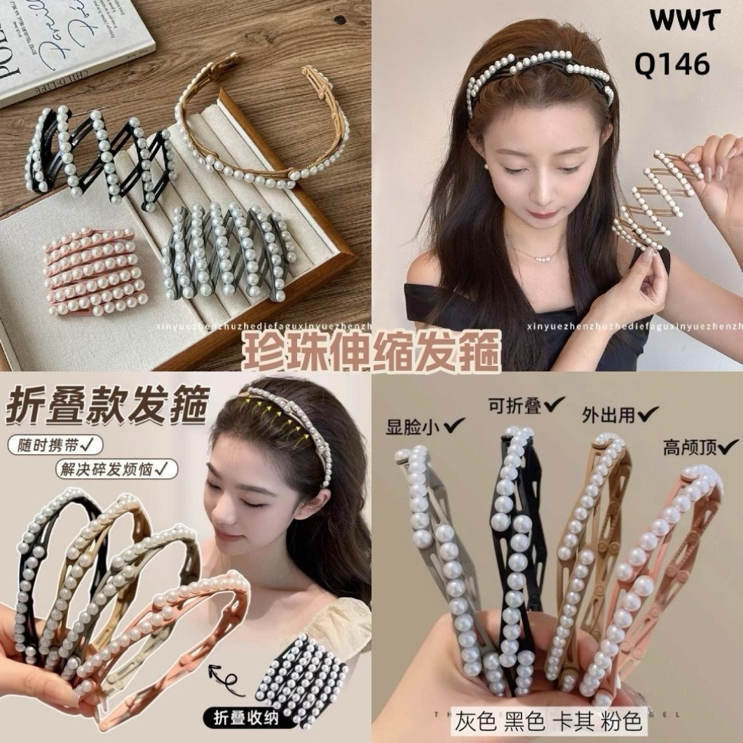 不仅能够修饰脸型,伸缩设计佩戴更舒适,珍珠装饰也把发型拉高一个档次💯,收起来也不占地方,随身携带很方便