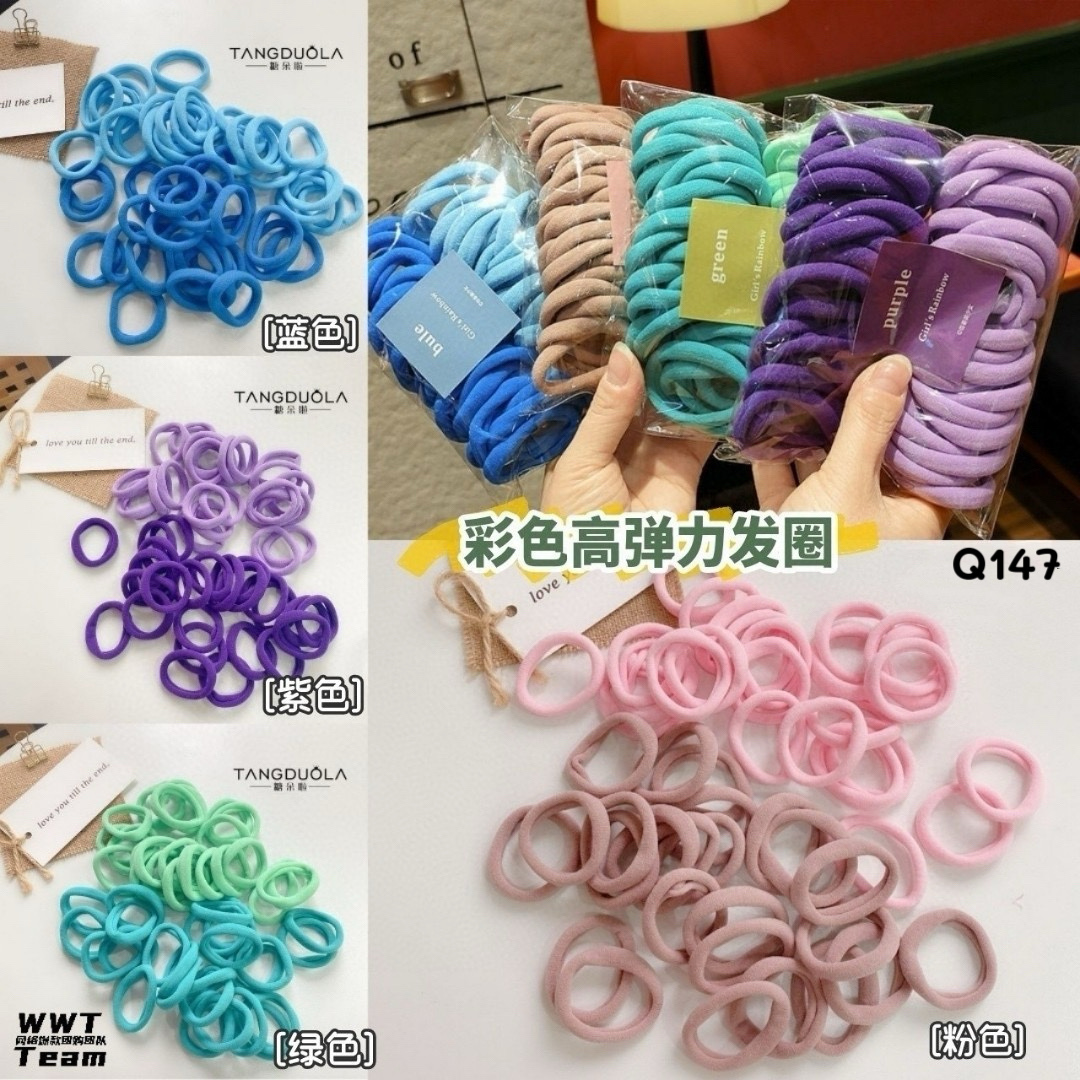 🛍️Q147 彩色高弹力发圈 💸#200条RM10 (各一包)