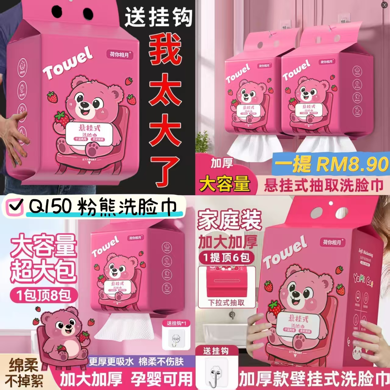 Q150 粉熊洗脸巾 📦#一提RM8.90