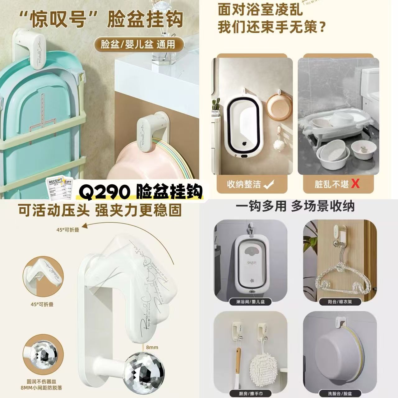 ✨ 挂钩一贴一挂,盆子稳稳上墙,一个钩子可以重叠挂好几个盆,浴室瞬间整齐了许多