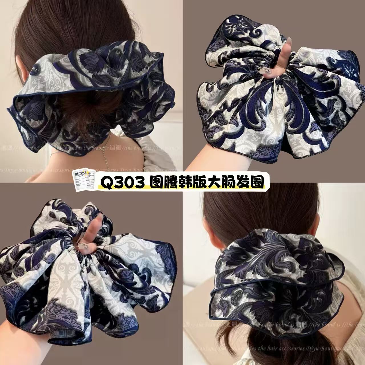 韩剧女主角同款的“高颅顶”秘诀! 这种大肠发圈真的永远的神,超显质感的复古图腾花纹,低调又贵气 🎀|