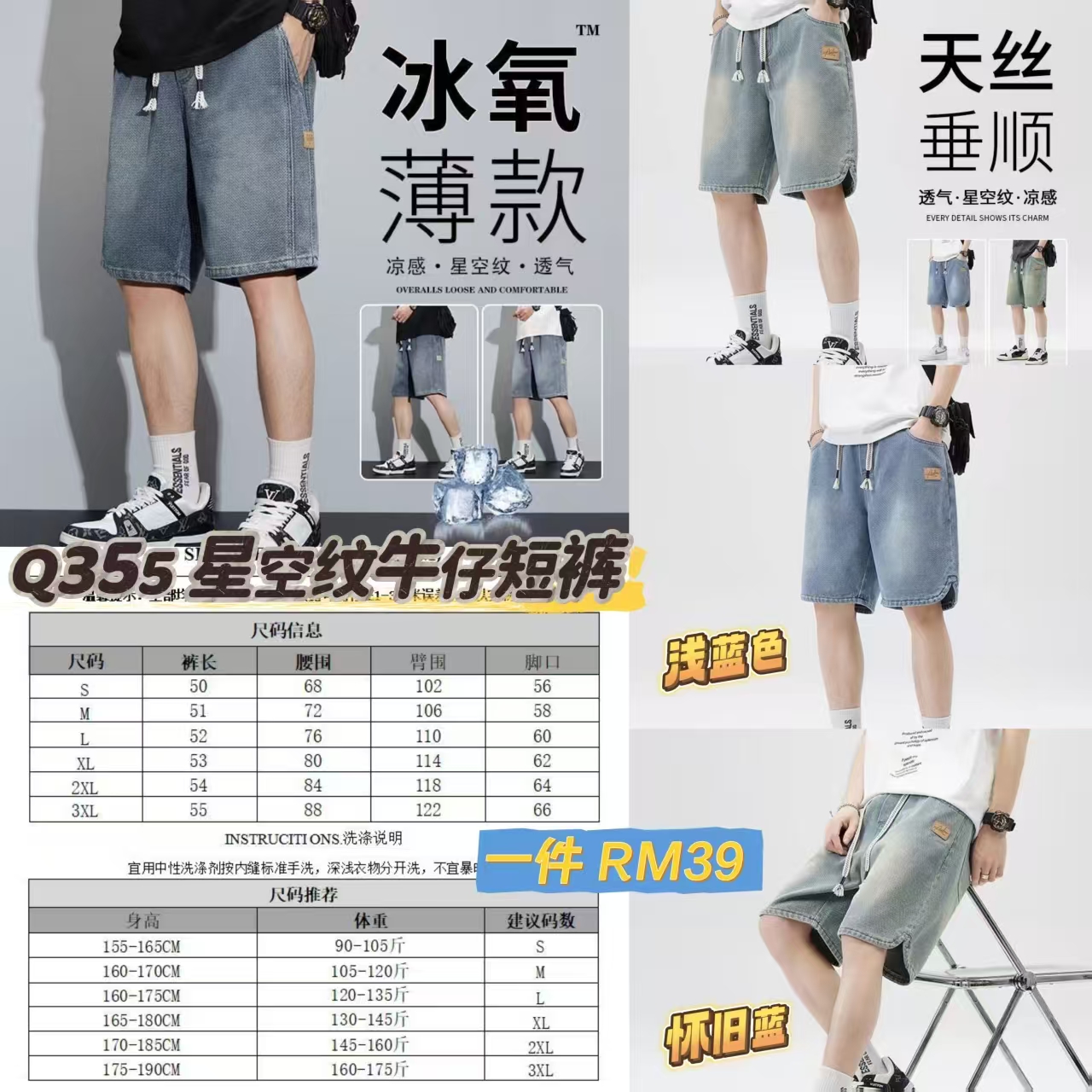 薄款星空纹牛仔短裤男士,直筒宽松美式潮牌休闲五分中裤
