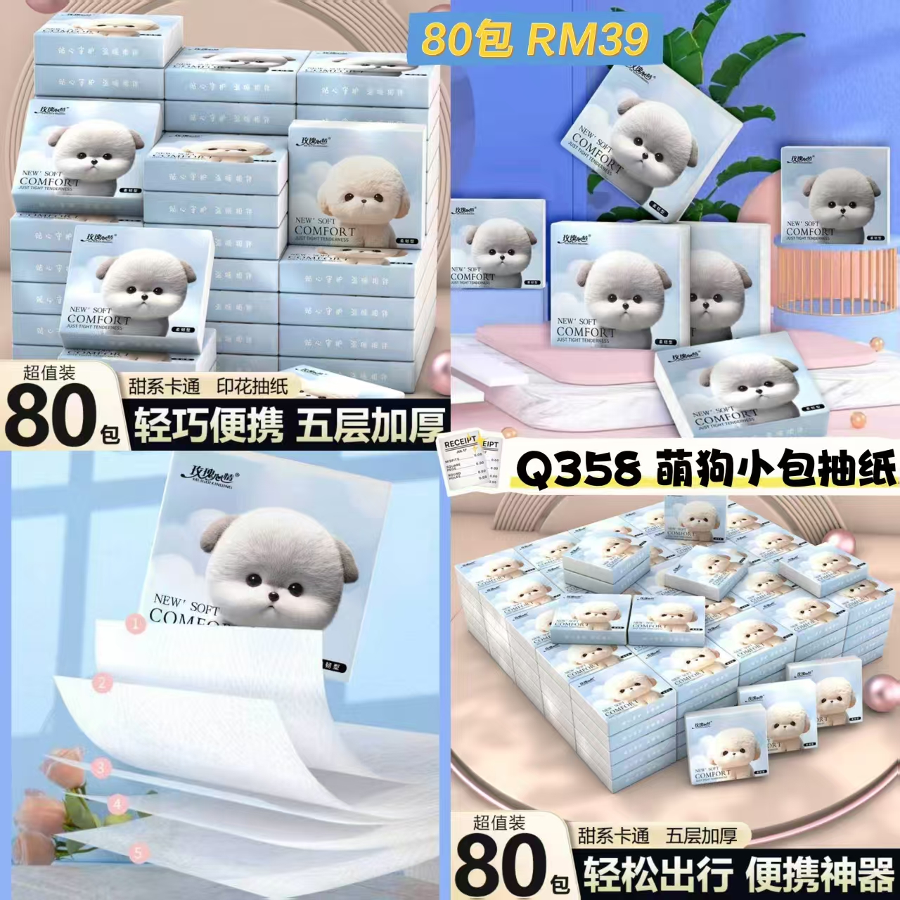 Q358 萌狗小包抽纸 📦#80包RM39