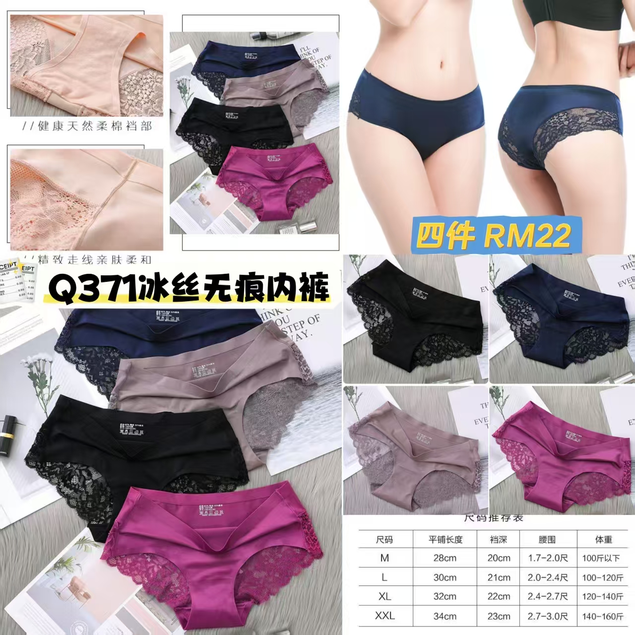Q371 冰丝无痕内裤(4件)