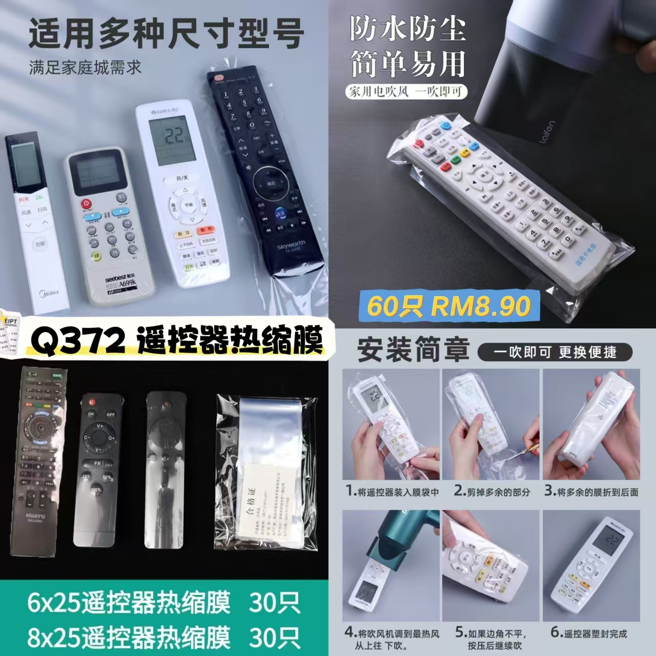 Q372 遥控器热缩膜 📦#60支RM8.90