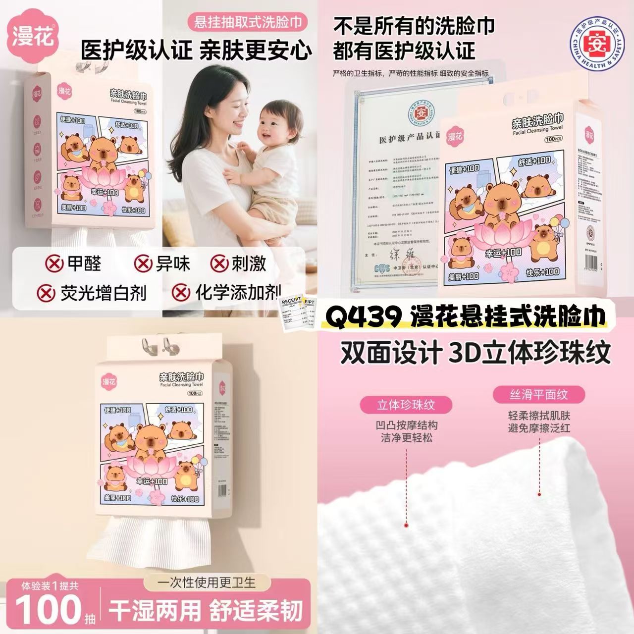 加厚珍珠纹,干湿两用不掉絮,婴儿和敏感肌都能安心使用