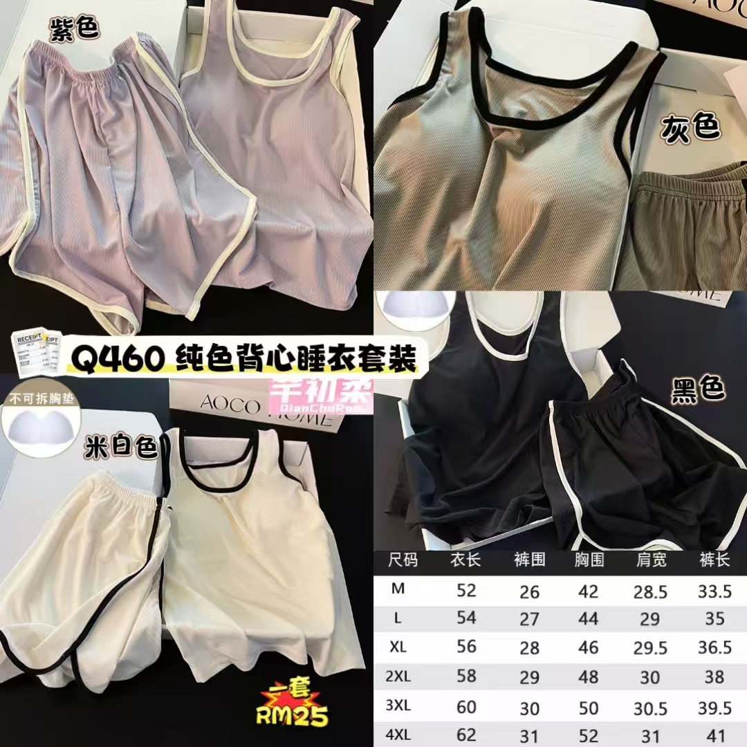 Q460 纯色背心睡衣套装 🛒#一套RM25