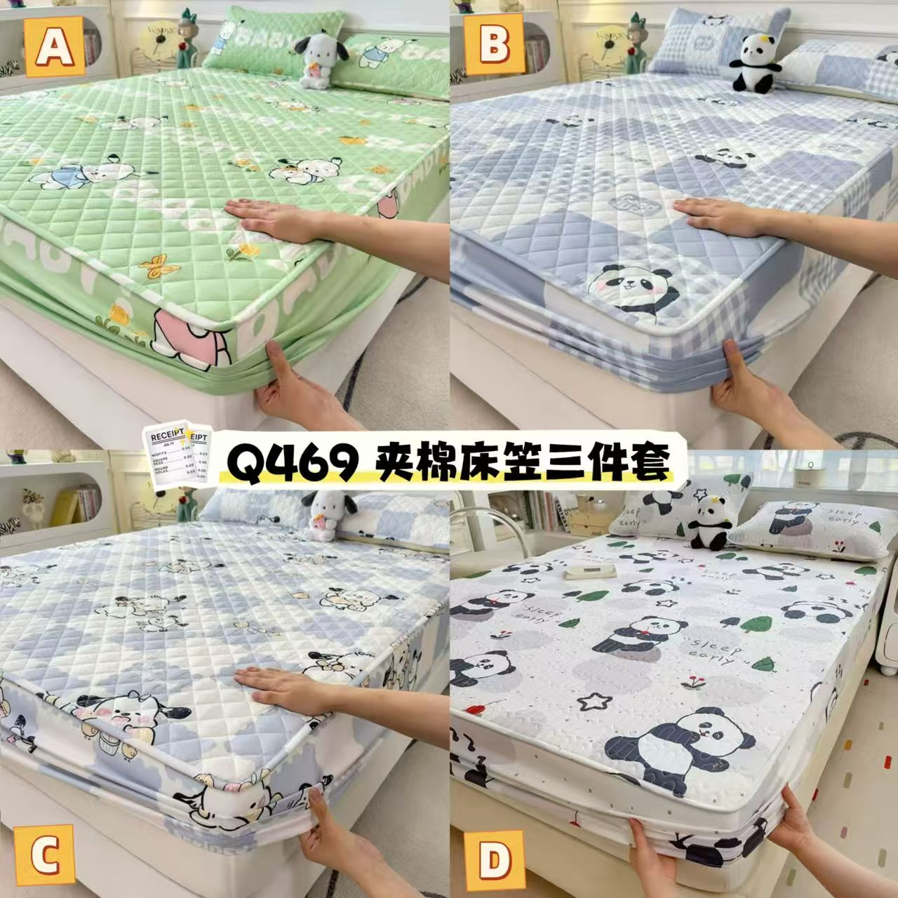 🛍 Q469 夹棉床笠三件套