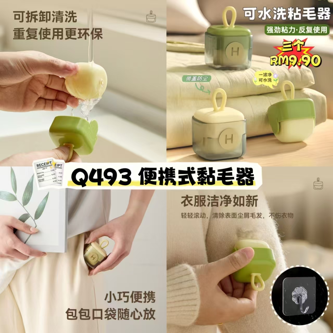 Q493 便携式黏毛器(3个)