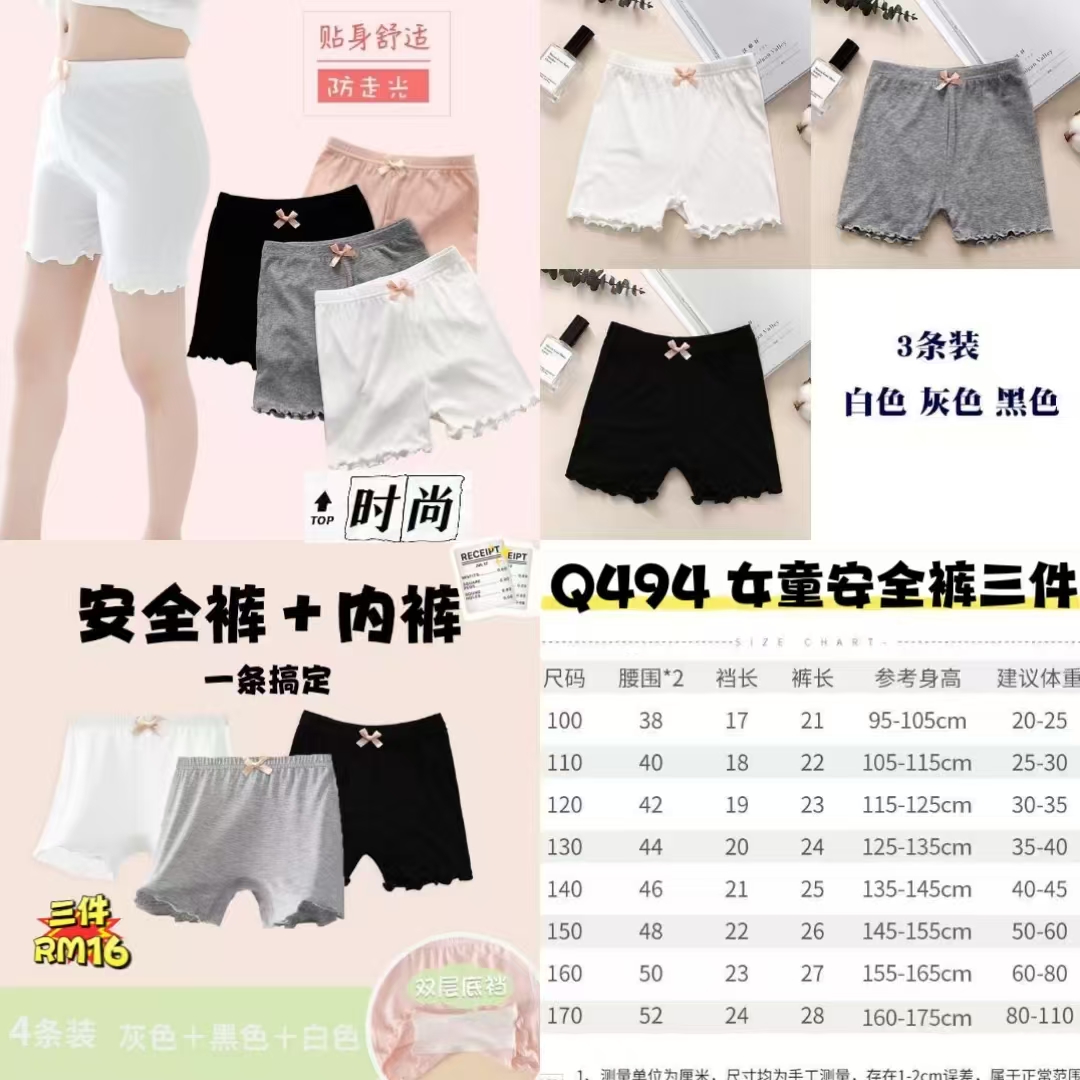 Q494 女童安全裤 🛒#三件RM16