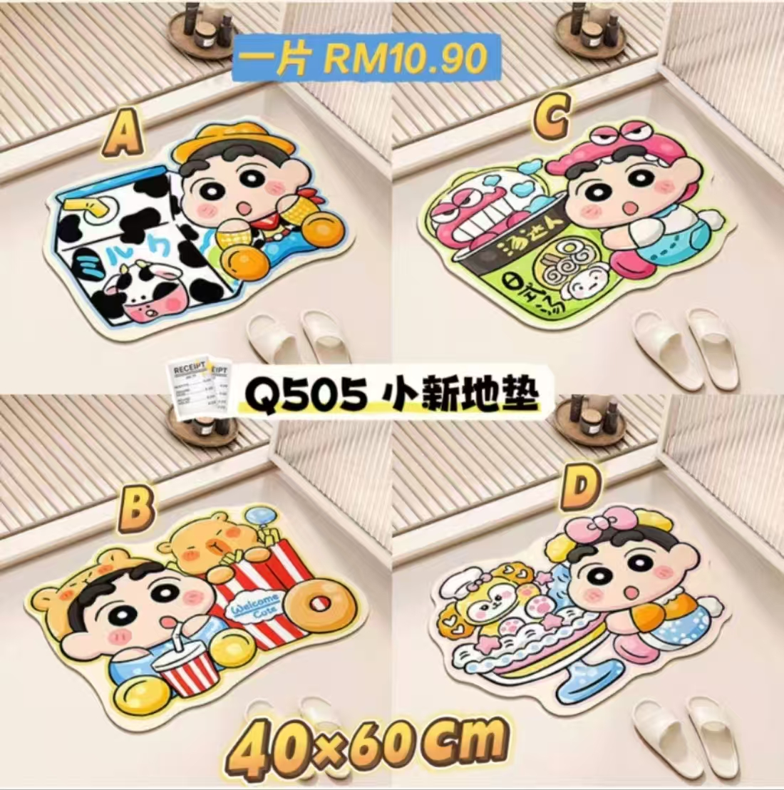 卡通硅藻泥浴室吸水地垫,蜡笔小新防滑速干脚垫