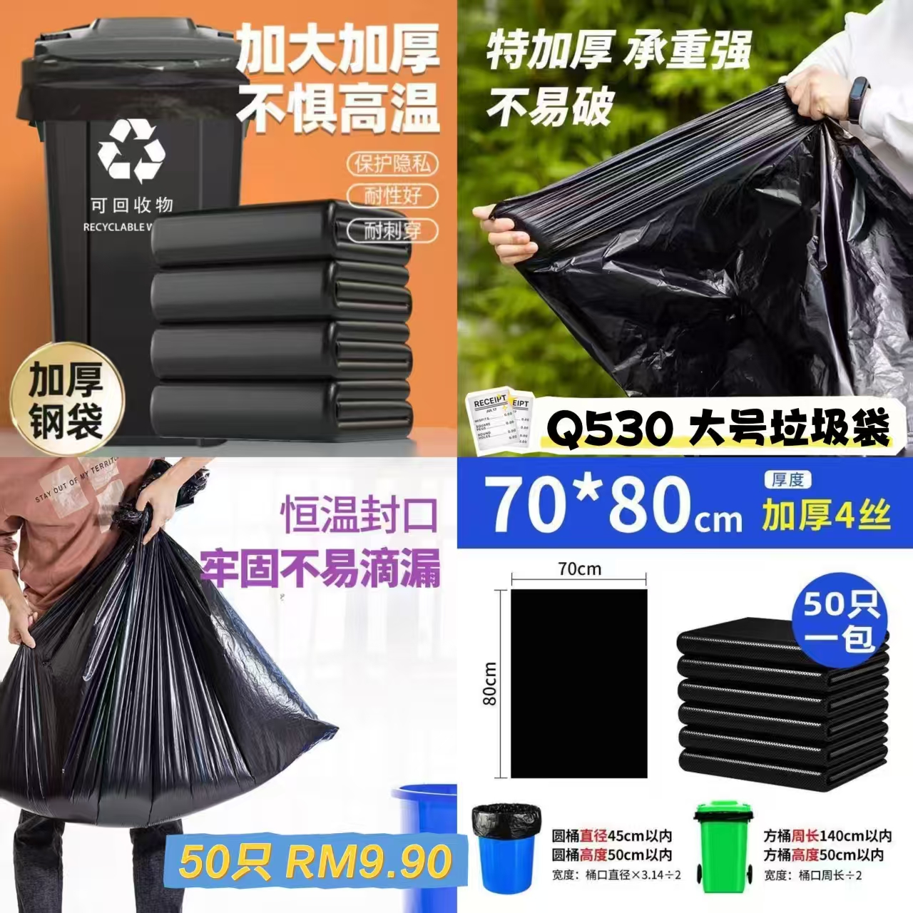 Q530 大号垃圾袋 📦#50只RM9.90