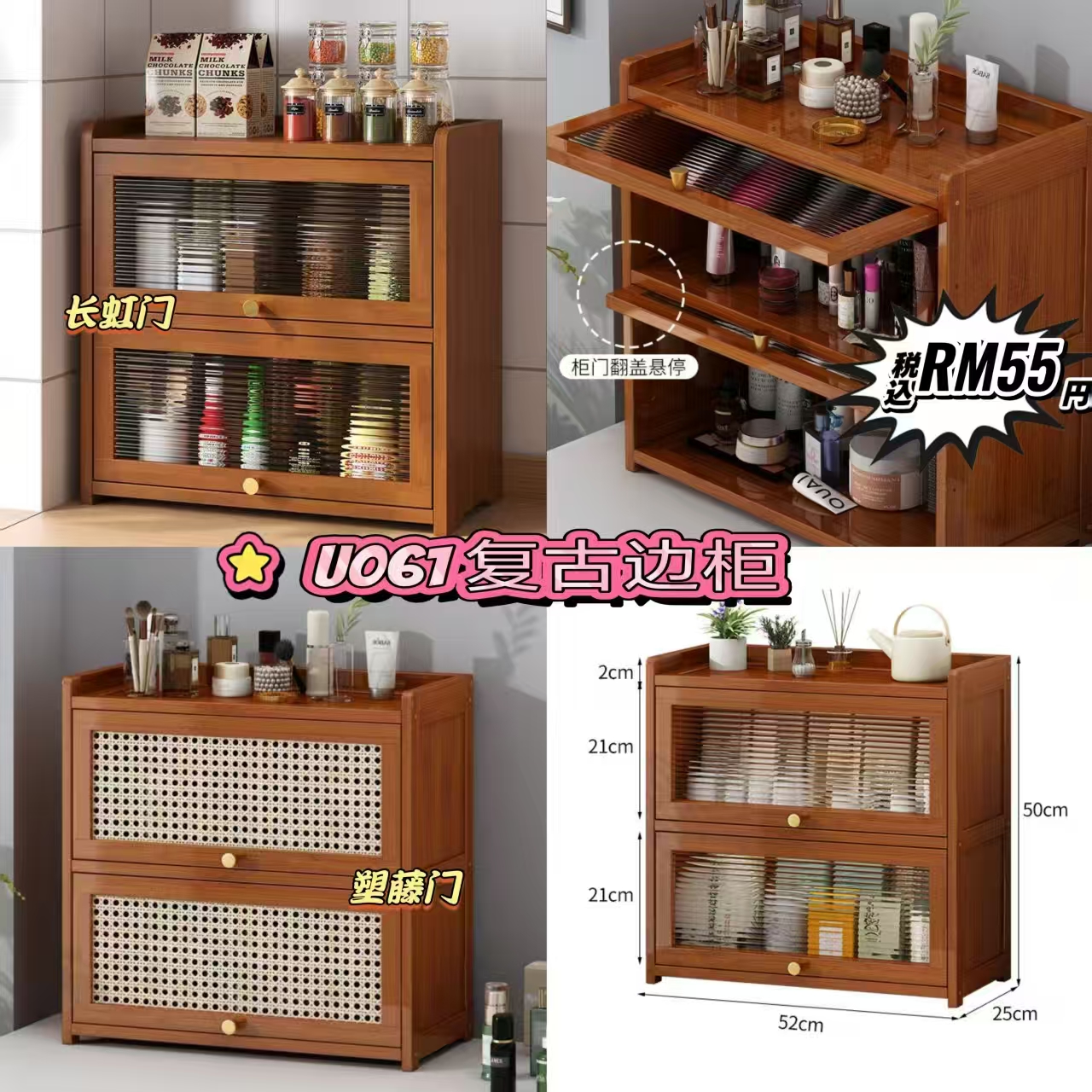柜复古边柜客厅置物柜 落地橱柜咖啡靠墙 一体储物柜茶水柜❤️