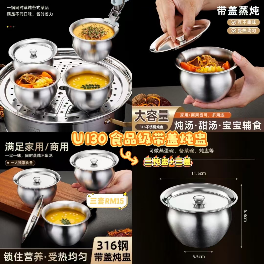 U130 食品级带盖炖盅 ⭐️ #三套RM15