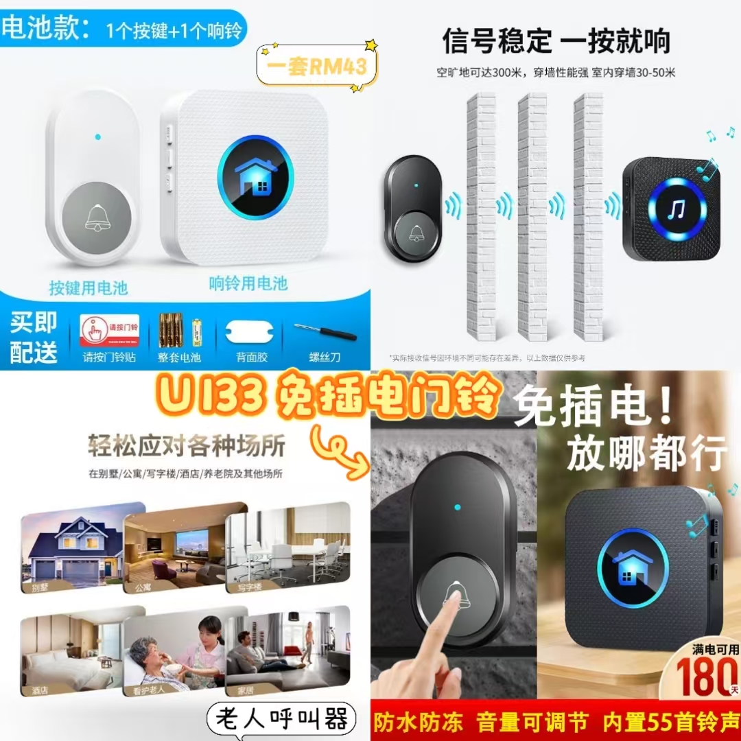 门铃家用无线远距离智能遥控叮咚,门钟大音量简易老人呼叫器