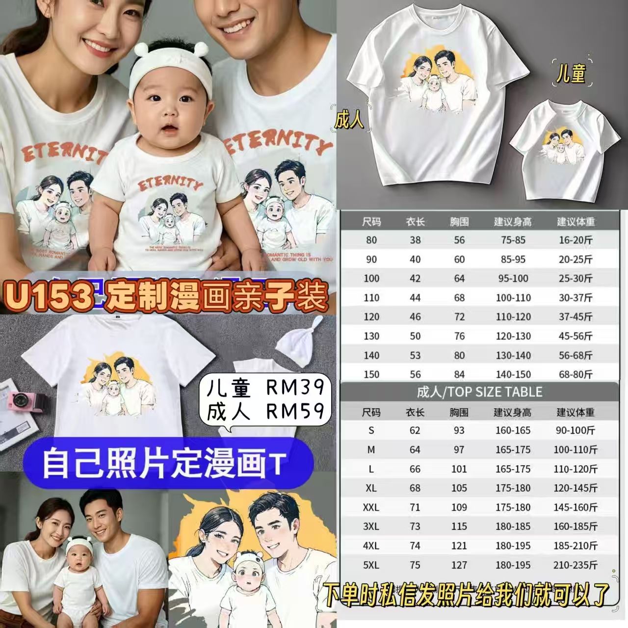 不一样的漫画亲子装定制短袖~新年就来不一样的定制上衣,🉑拿照片定漫画T恤,非常特别❤️