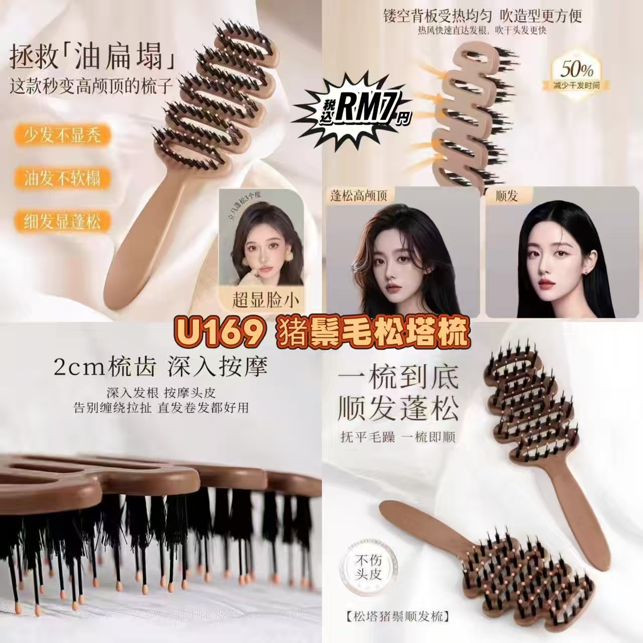 Be the first to review “U169 猪鬃毛松塔梳(1把)”