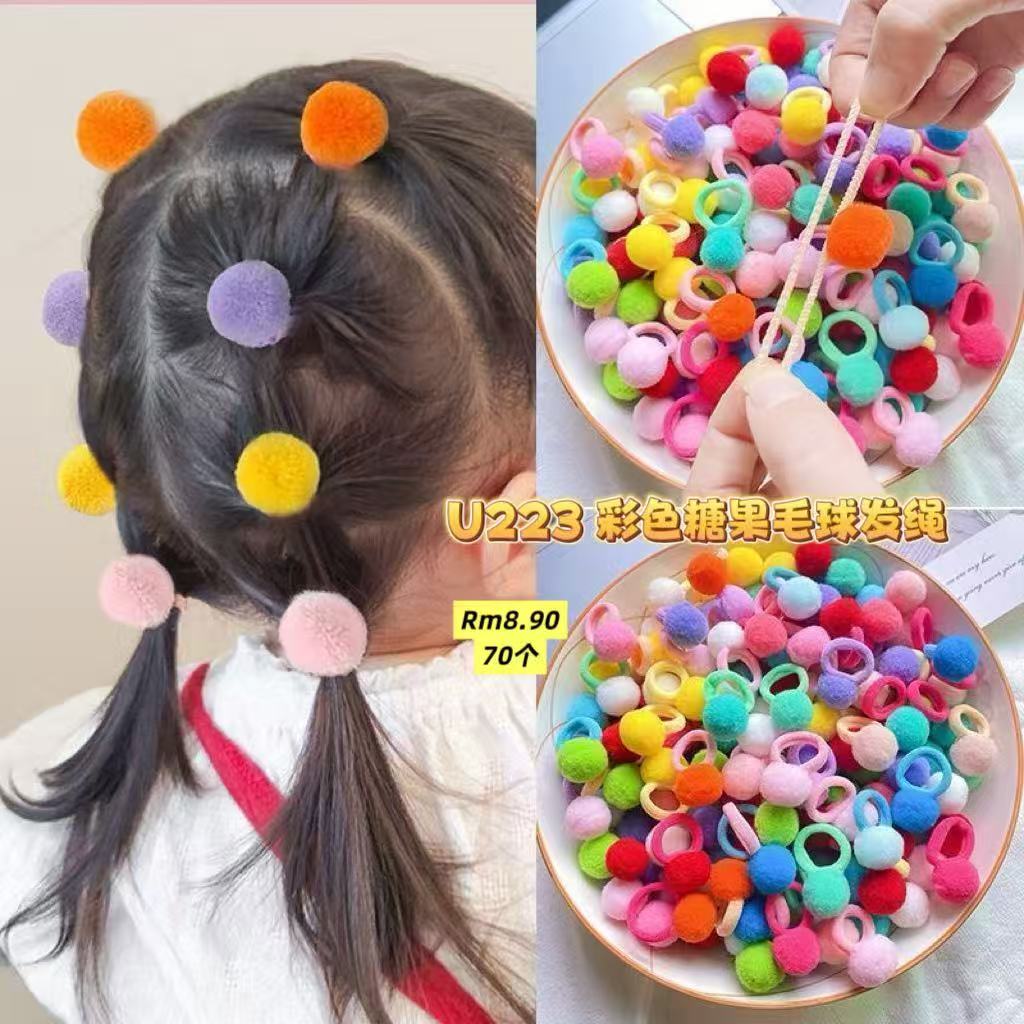 U223 彩色糖果毛球发绳(70个)