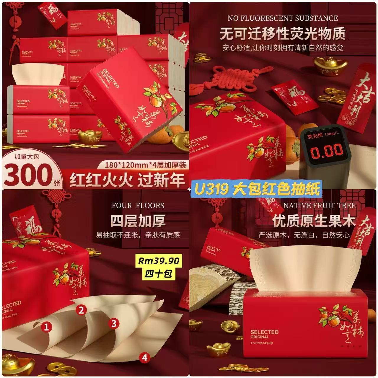 U319 大包红色抽纸 ⭐️ #Rm39.90 (四十包)
