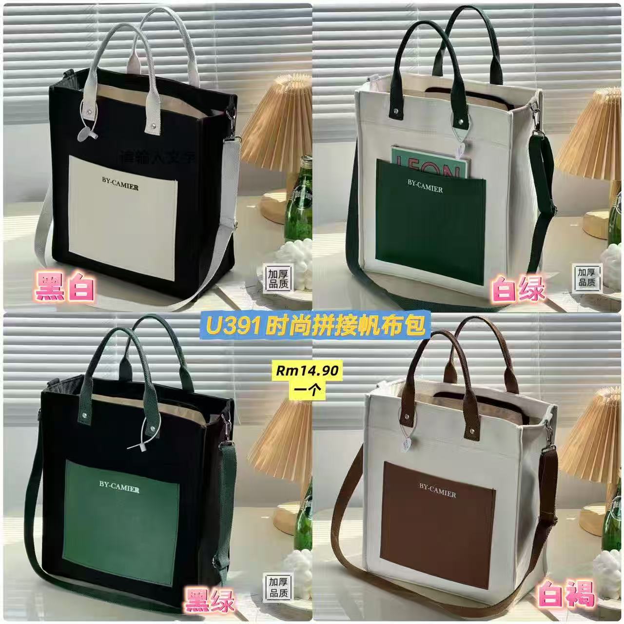U391 时尚拼接帆布包 ⭐️ #Rm14.90 一个 Size👉高33cm 宽29cm 底宽13cm