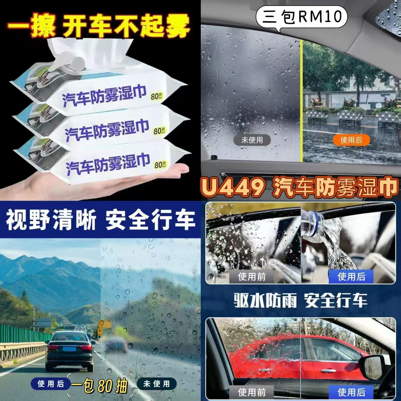 U449 汽车防雾湿巾(3包)