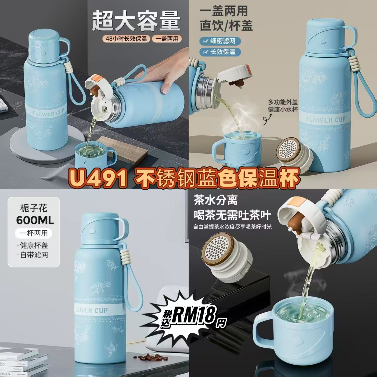 U491 不锈钢蓝色保温杯 ⭐️ #一个RM18