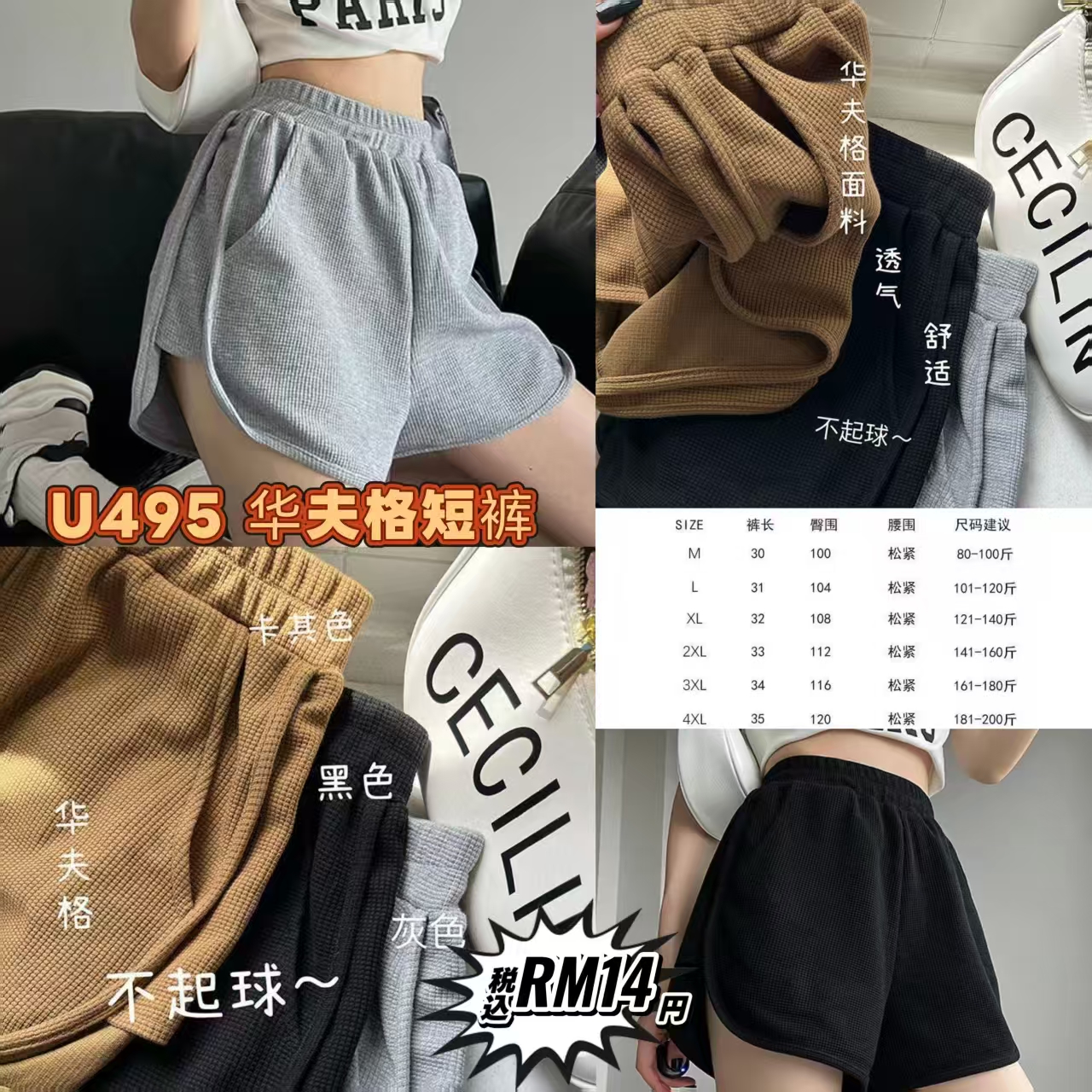 华夫格运动裤短裤 新款宽松显瘦高腰大码休闲阔腿裤子