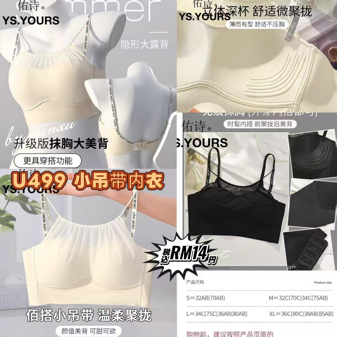 U499 小吊带内衣 ⭐️ #一件RM14