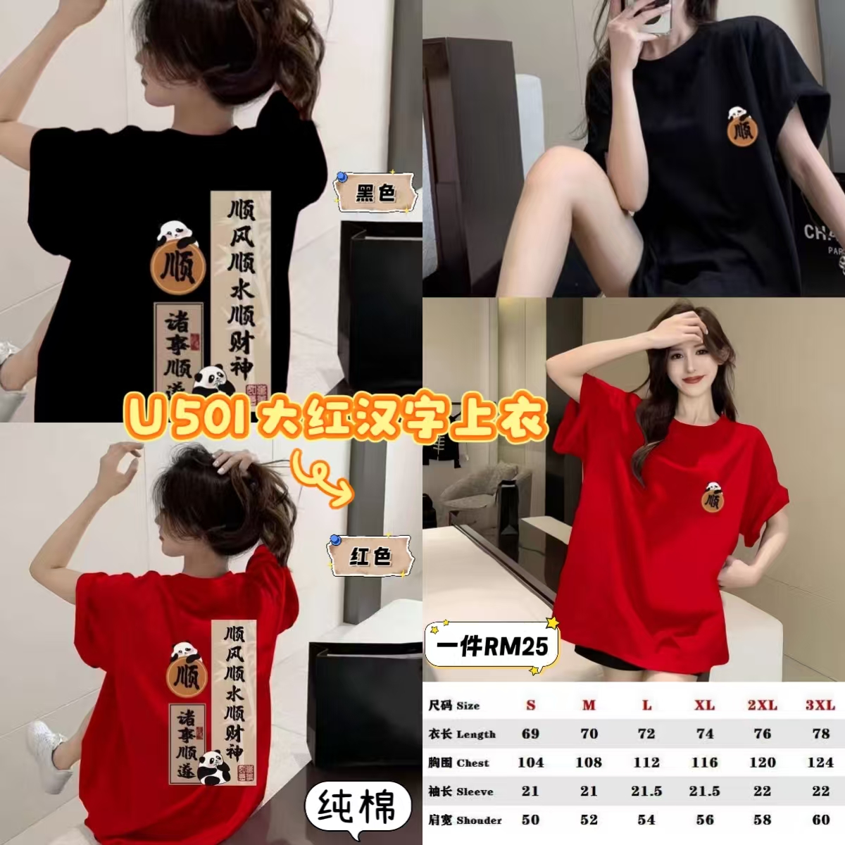 U501 大红汉字上衣 ⭐️ #一件RM25