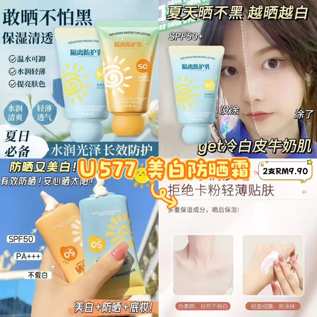 SPF50+美白防晒霜乳,遮瑕持久隔离紫外线清爽防汗温和