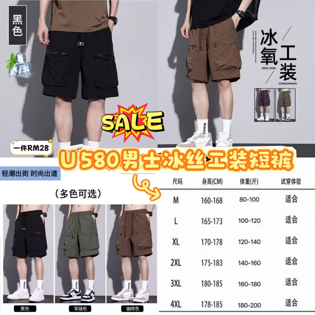U580 男士冰丝工装短裤 ⭐️ #一件RM28