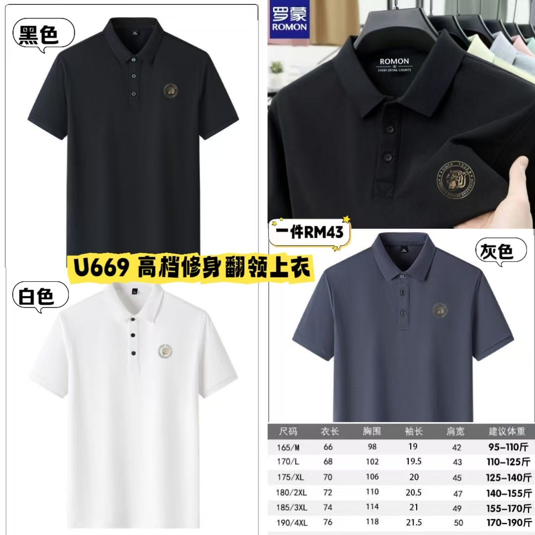 罗蒙高档修身商务休闲透气上衣,翻领短袖Polo衫