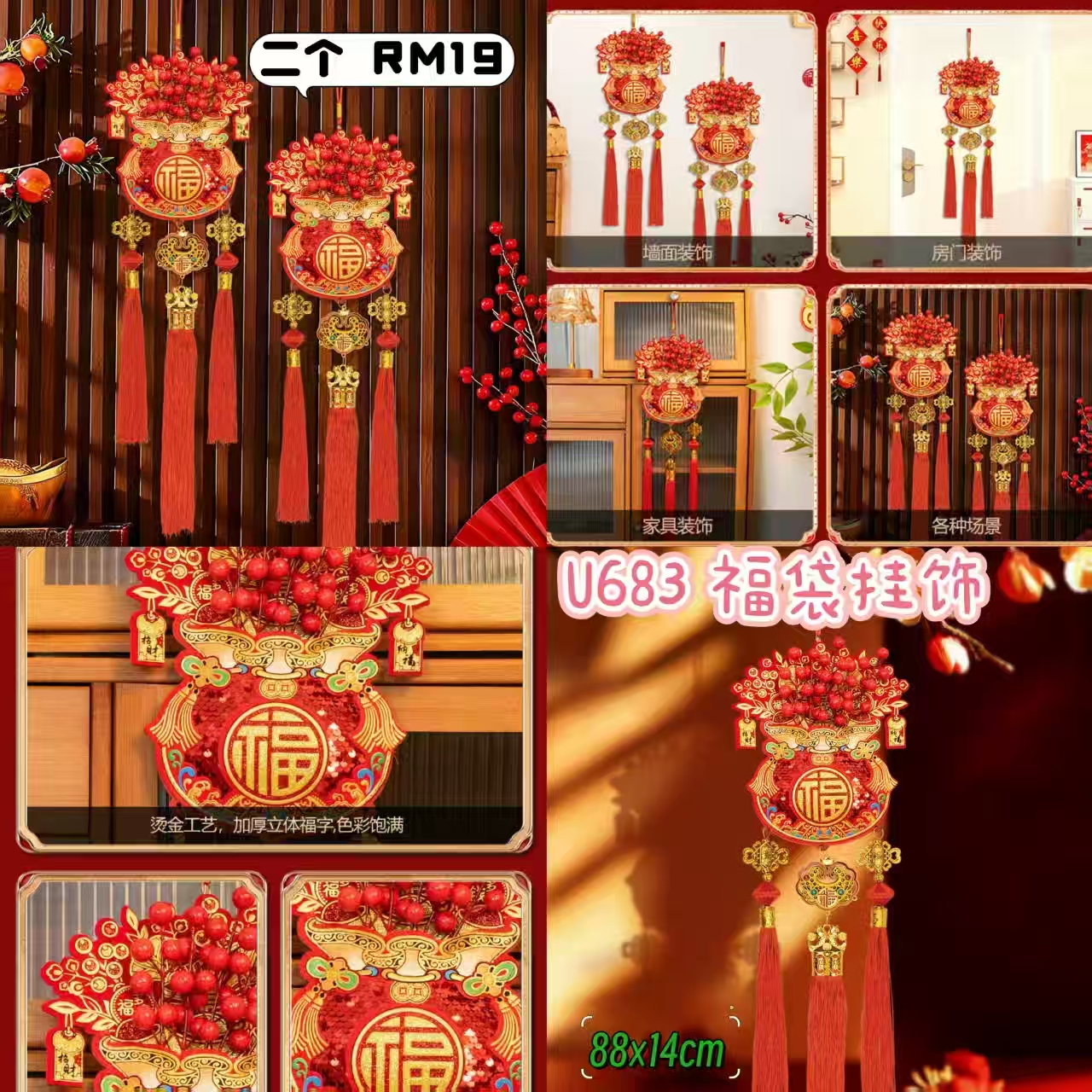 2026新款春节植绒印花福包红果挂串,客厅中国结挂件