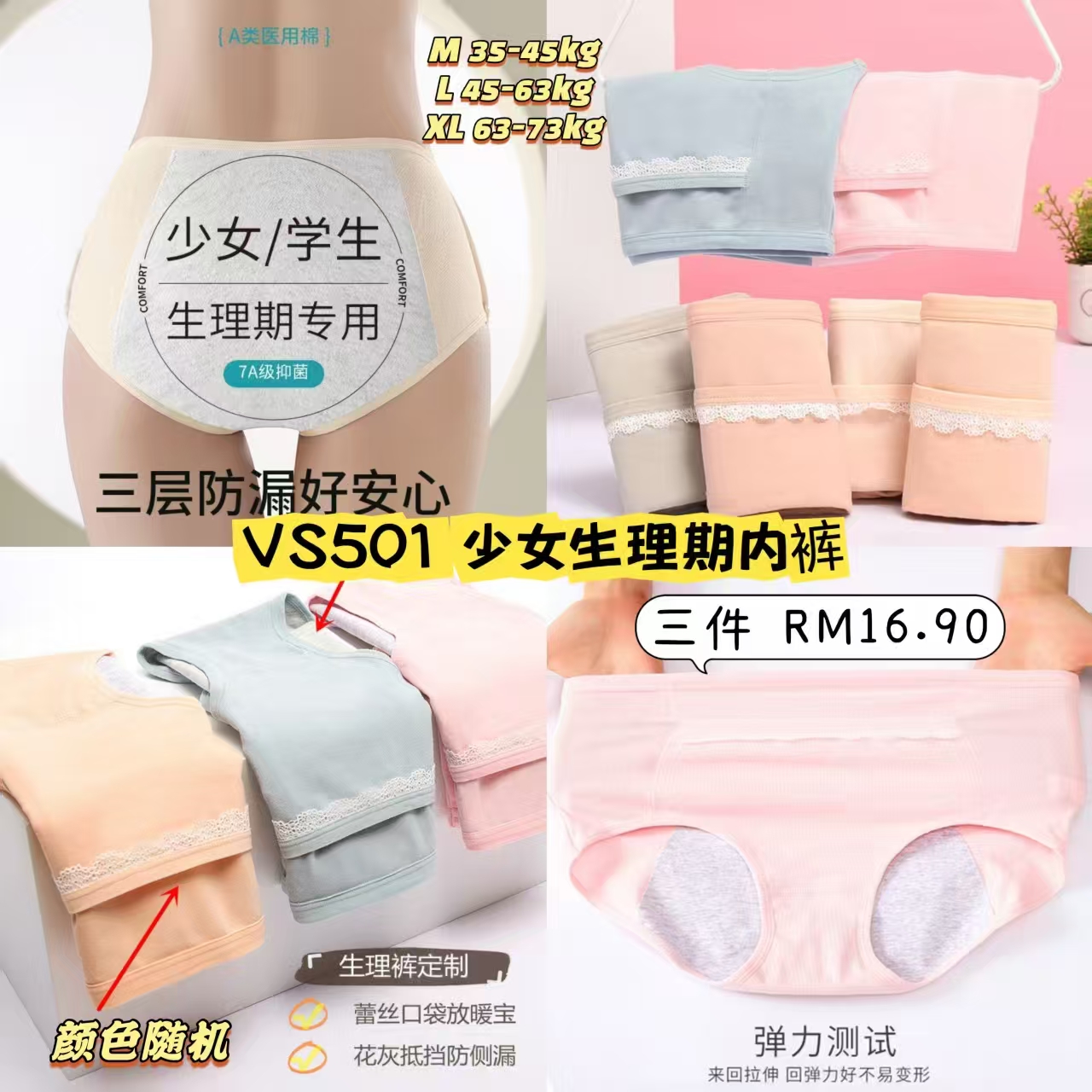 🅥🅢 第九期低价狂欢团 VS501 少女生理期内裤 📦#三件RM16.90