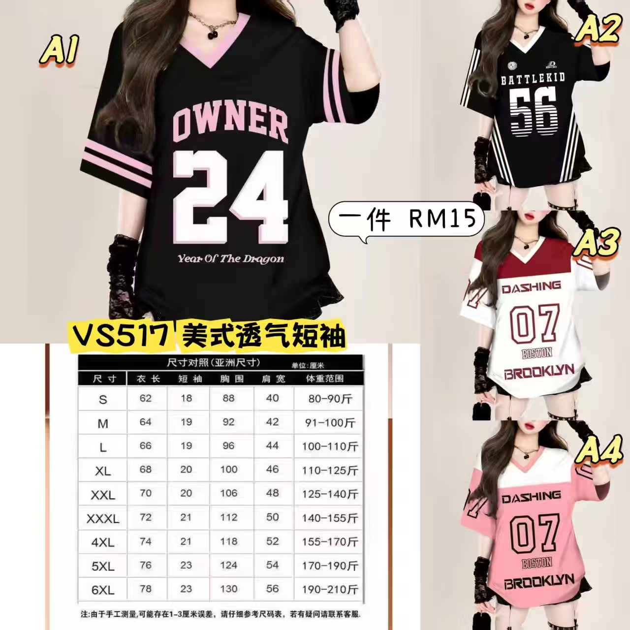 🅥🅢 第九期低价狂欢团 VS517 美式透气短袖 📦#一件Rm15