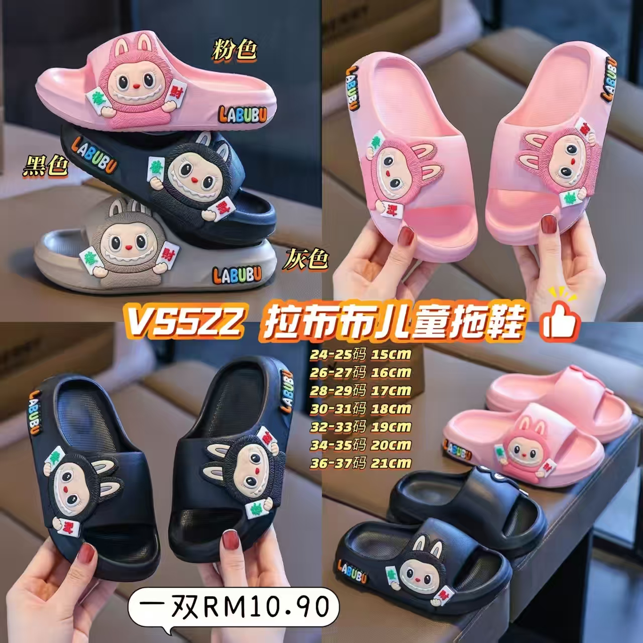 🅥🅢 第九期低价狂欢团 VS522 拉布布儿童拖鞋 📦#一双Rm10.90