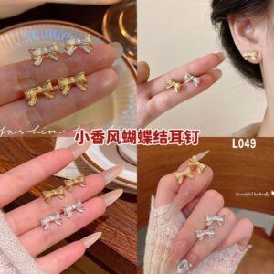 L049 小香风蝴蝶结耳钉 (1对)