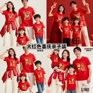 L160 大红色喜庆亲子装 (三件/四件)